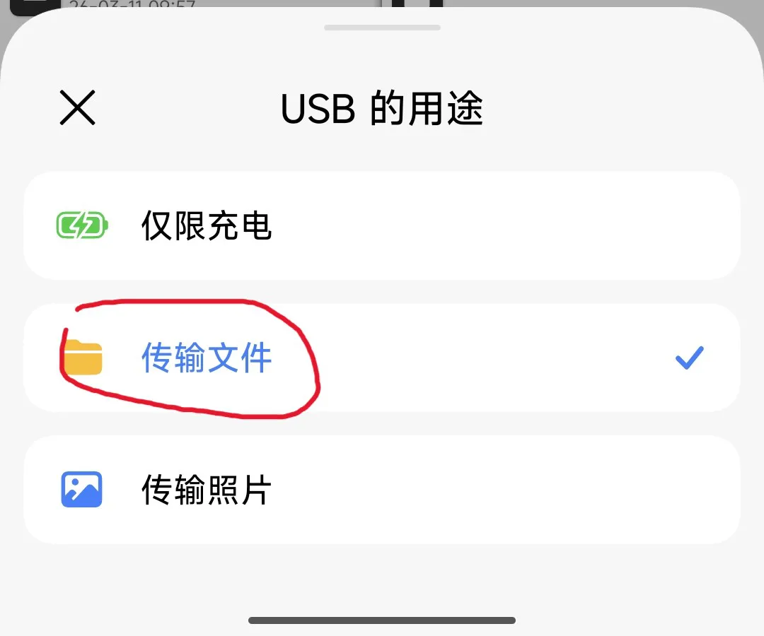 在手机上选择允许侦错和传输文件