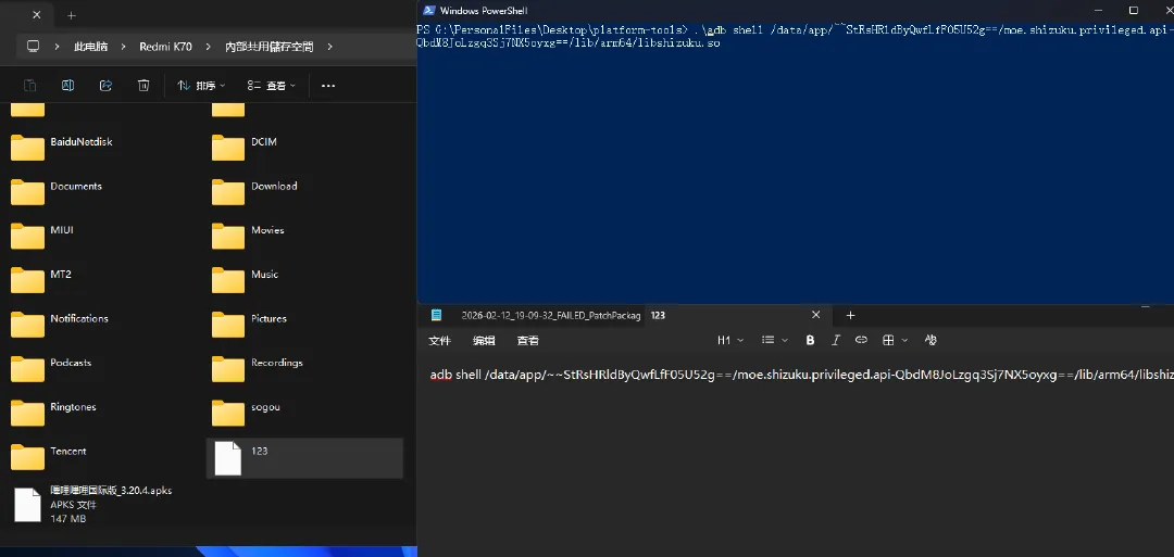 找到你在手机上创建的文件,复制其中的指令,在powersell窗口中按下 ctrl+v 粘贴,在粘贴的指令开头加上 .\